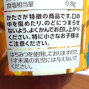 なんなの?じゃがりこをお湯でふやかして離乳食みたいにする人がいるかもしれないからなの??でもじゃがりこは確かにじゃがいもだけど、乳児にとってあまり良い成分が入っていない気がするからはちみつが入っていようがいまいがオススメできないのでは…。