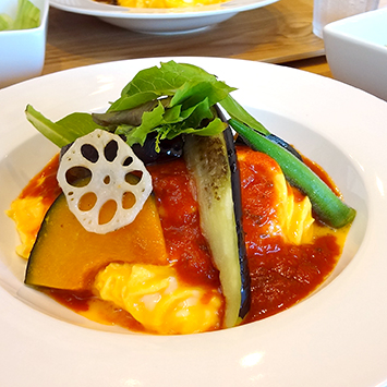 卵農園のおうちの人がやっている卵中心のお店で、ランチタイムはオムライス、カフェタイムはパンケーキを提供しています。