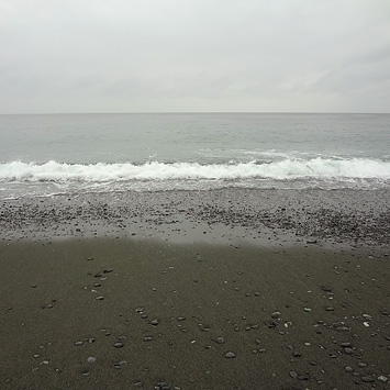 2館の見学を終えて、まだ時間があったので行けたら行こうと言っていた海へ。雨は降ってたんだけど、ぴよさんが行きたいと言ってくれたので向かいました。