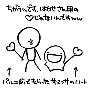 ハートのミニバルーンを配っていたのを受け取ってしまって内心「帰り道困るなぁ」と思ったら隣でコインさんが「もらいたい…」って言ったので「あっじゃあこれを…!」って思った瞬間お姉さんが聞きつけて「どうぞ!」って渡してくださって私の「あっ」が空振った(笑)