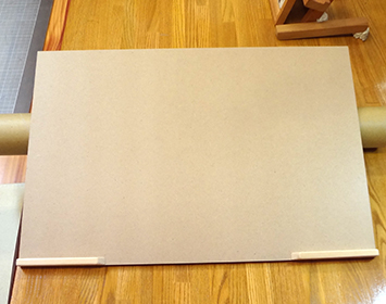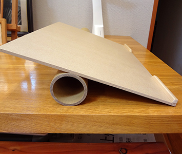 大きな絵を描くときに目からの距離が紙の上部と下部でかなり差が出てしまい、絵が縦長に伸びた状態(しかも一律ではなく上部がより伸びる)で完成してしまうということが多々あったので、目から紙への距離をなるべく平均化する目的で作りました。