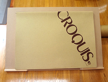 ストッパーを両端に寄せてセンターをあけたのはクロッキー帳を斜めにして描きたい時に角を逃がすためです。これができるのとできないのとでは結構使い勝手に差が出ます。