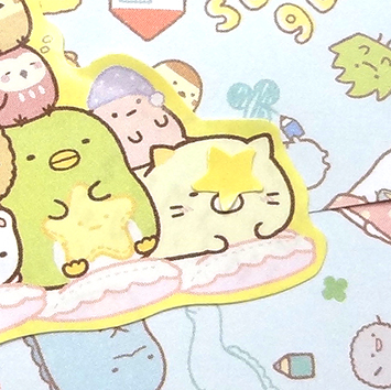 封に貼られていたすみっコのシール、よく見たらねこの顔面に星が貼りついてるんです…どうしたのねこ…何かの罰なの…(笑)