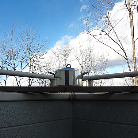 あとこれ、元日に実家に行ったら玄関前で豚の角煮の鍋が冷まされていて青空のもとなんだかシュールだったので撮ったやつです。