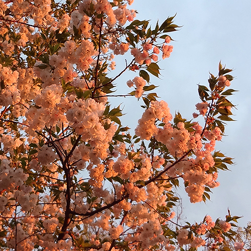 白妙がオレンジ色になった。白妙は白い八重桜。