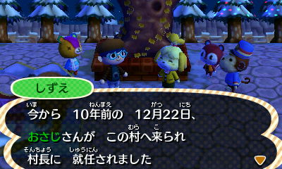 とび森内で2028年12月22日が冬至だったら、きっとずっと記念式典は暗い中で執り行われるのでしょう…。