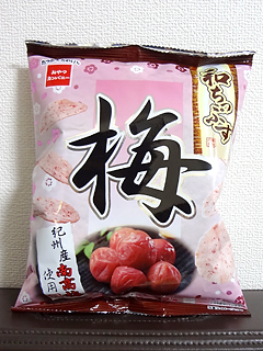 おやつカンパニーさんから。ちっぷすっていうかほらアレ、えびせんべいってあるじゃない。あれの梅味という感じ。梅味好きだから良い。
