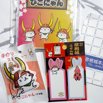 あと、ひこにゃんとみつにゃんとさこにゃんグッズを…もらった(笑)
