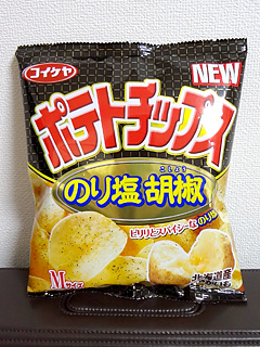おいしかったでげす。つい「のり塩」の方に目が向いちゃって普通っぽい感覚で袋開けたけど、胡椒がきいてておいしかったです。そういえばのり塩胡椒だった!ってなった。