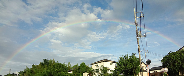 東の空を見ると大きな虹が出ていました。