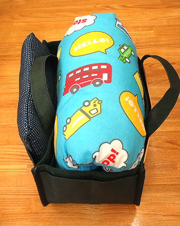 今はクッションを詰めてかたちを整える期間です。ぎゅうぎゅうです。自動車のクッションは大家さんちのムスコくんのだと思います。(勝手に使う)
